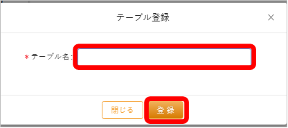 ②テーブル名を入力し、「登録」キーを押下します。テーブル登録を中止する際は、「取消」キーを押下しま