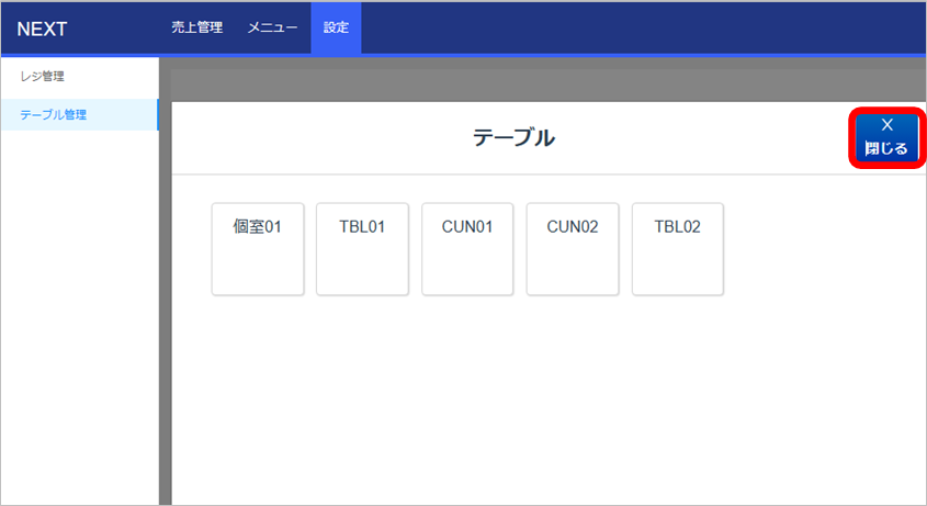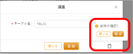 ②テーブル一覧の右上のボタンが、「編集」から「閉じる」に変わると、テーブルの編集が可能になります。