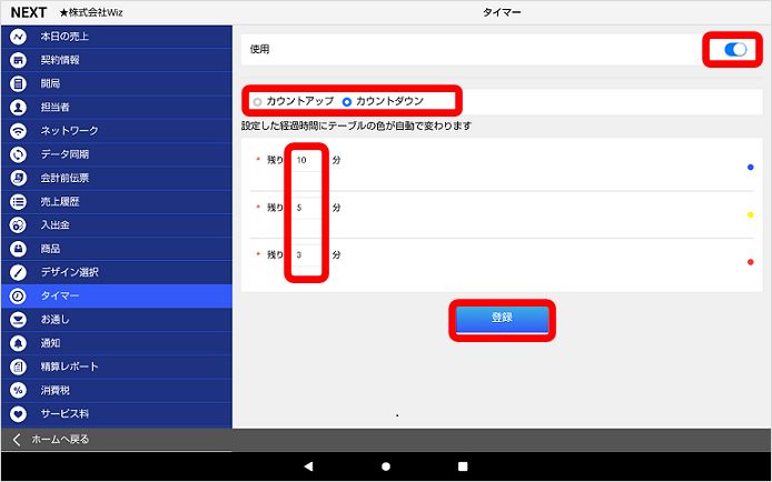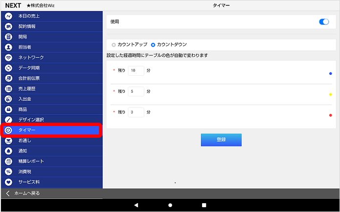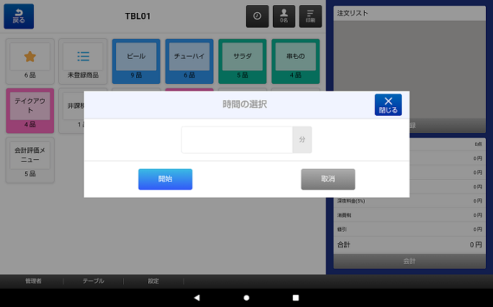 タイマーで、テーブル利用時間の設定が可能です。