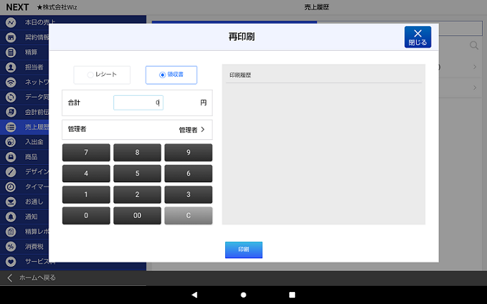 ③金額、担当者を確認後「印刷」キーをタッチします。